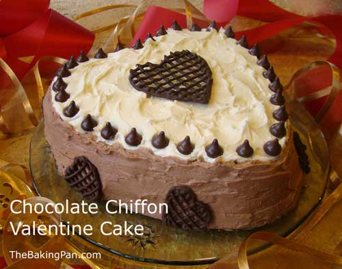 by Carol Arroyo Chocolate Chiffon Valentine Cake Pan: Two 9" Heart Shaped or Round Layers Pan Prep: Greased Bottom Only and Parchment Paper Oven Temp: 350° Storage: Covered, Room Temperature Help: Cake Hints and Tips, Chocolate Types, Melting Chocolate, Tempering Chocolate Shop for this Recipe: Measuring Cups, Spoons, Scales |