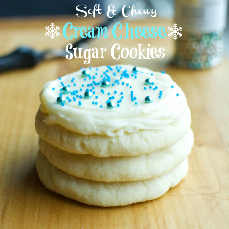Super soft and thick sugar cookies frosted with a generous layer of cream cheese buttercream! Perfect for decorating or simply slathering on a nice coat of frosting! Of all the Christmas traditions that exist, pretty much everyone shares the same memories of baking and decorating sugar cookies with their mother, grandmother, aunt, or maybe even father-sounds like a rad dad to me!