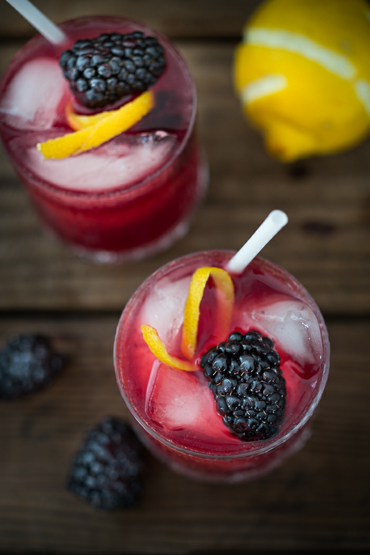 A refreshing summer drink, featuring fresh muddled blackberries, gin, lemon juice and soda or ginger beer, is called the Blackberry Bramble Cocktail. A spin off the classic drink- the Bramble, first created in London in the 80's, made with dry gin, lemon juice, simple syrup and Crème de Mûre, a blackberry liquor - here I've added a handful of fresh juicy ripe blackberries, muddled and served over ice, topped with soda or ginger brew for a flavorful twist.