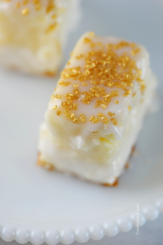 Petit Fours make a delicious, delicate bite sized cake perfect for your dessert table at a shower or party! Made of cake, a sweet filling, and covered in a poured icing, petit fours steal the show! Petit fours have always been one of my favorite things to find on a dessert tray at parties, showers, weddings, or other special occasions.