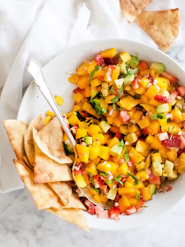 My chicken breasts were crying out for help. "Ka-kah! Help me! Just salt and pepper makes me b-o-r-i-n-g" Because who craves boring chicken? Me? You? Hardly. "Wait! I have that mango salsa recipe that would be the perfect topper. Let me go to the bloggity blog and find the recipe!"