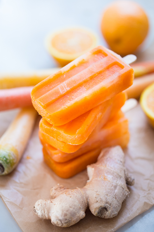 These Grown-Up Ice Pops, made with fresh carrot and orange juice are what I've been living on for the last couple of weeks. It has been so hot here and these refreshing, sugar-free, nutritious popsicles are incredibly restorative and cooling. When balanced right, fresh orange juice and carrot juice need no added sugar to taste delicious.