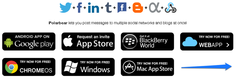 Polarbear lets you post messages to multiple social networks and blogs at once! Get it for Android, iOS, BlackBerry 10, Windows, Mac, Chrome OS and Web now! →